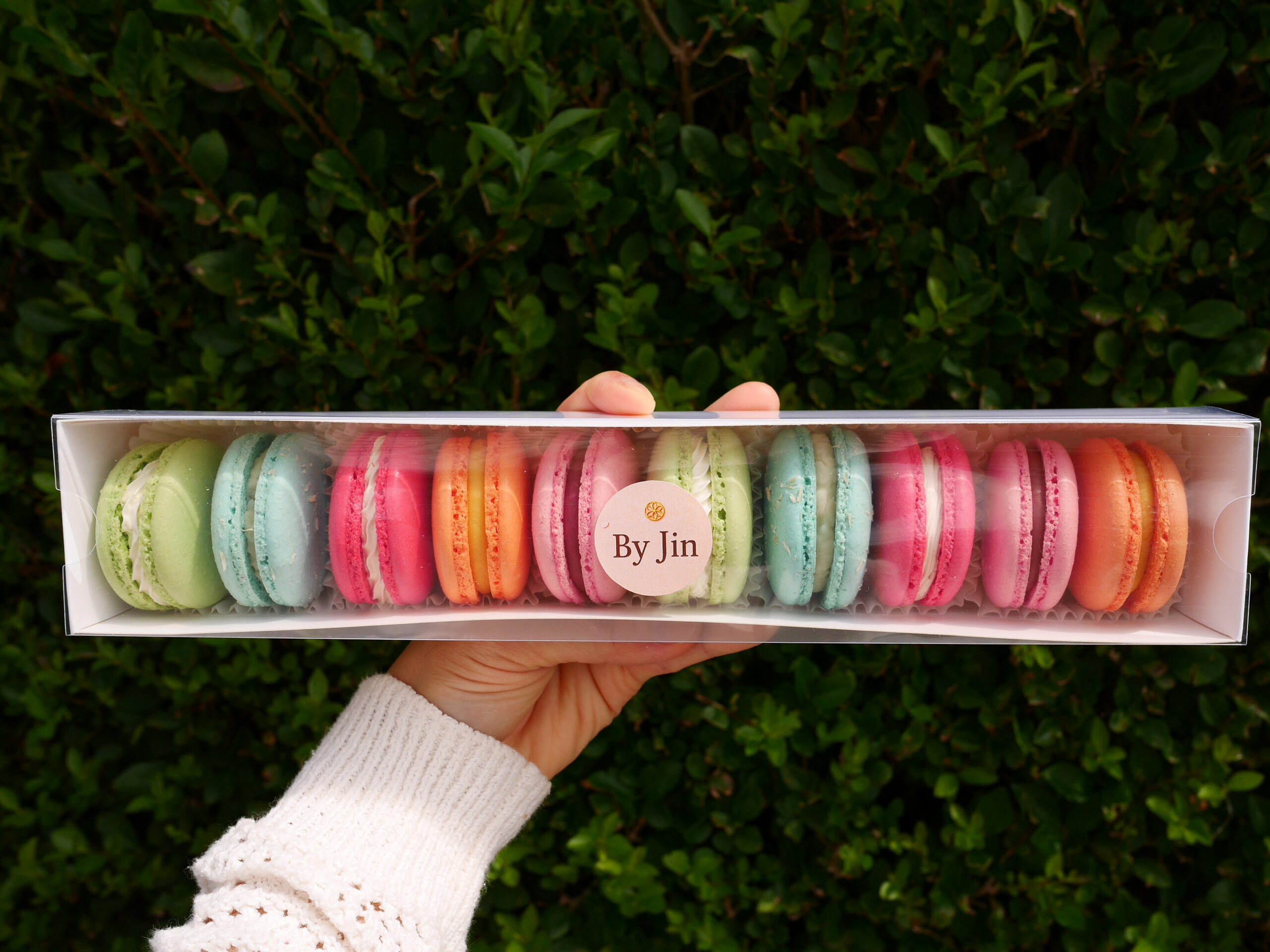 Een doos met 10 macarons naar eigen smaak samen te stellen.